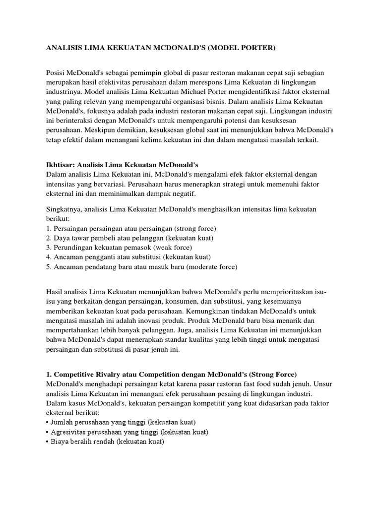 Contoh analisis 5 kekuatan porter. Teori tersebut sangat terkenal dengan istilah porter five forces model. Dalam penelitiannya mengenai profitabilitas dan kompetisi dalam suatu industri michael e porter menyatakan lima 5 kekuatan yang harus dipahami sebelum berinvestasi dalam industri tersebutlima kekuatan tersebut terdiri dari competitor supplier customer substitute dan new entrants. Analisa porters five forces memberikan gambaran yang powerful mengenai bagaimana tingkat persaingan dari suatu industri baik itu dari sisi supply chain supplier dan pelanggan serta pasar pemain baru dan substitusi. Analisis porters 5 force dalam bisnis indomaret dalam menganalisis kondisi bisnis suatu perusahaan dapat digunakan analisis lima kekuatan bersaing five competitive forces. Porter didalam teori persaingan kita mengenal ada suatu teori dari michael porter yang sangat terkenal pada saat menganalisis persaingan atau competition analysis. Sebelum masuk ke five forces perlu dianalisis terlebih dahulu industri dalam fase apa.