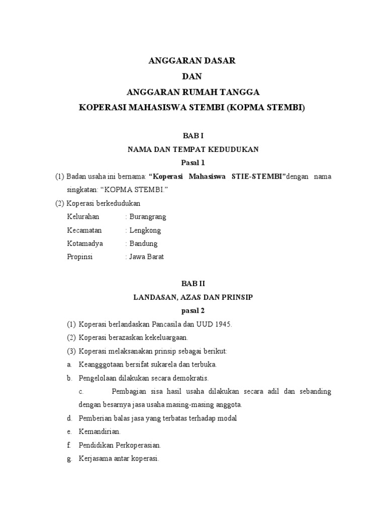 Bersedia membayar simpanan pokok sebesar rp. Anggota yang berhenti atau ahli warisnya akan menerima kembali simpanan pokok dan simpanan. Anggaran dasar anggaran. Tentu saja contoh anggaran dasar koperasi ini dapat disesuaikan dengan bentukan koperasi anda. Anggaran dasar dan aturan rumah tangga koperasi. Jenis koperasi ini adalah koperasi serba usaha 2.