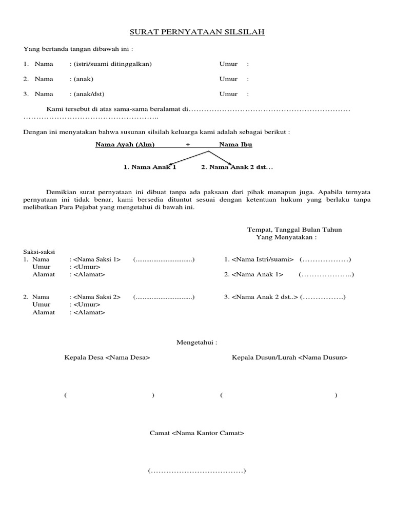 Untuk silsilah kolom diatas mengetahuinya bisa anda tambahkan beberapa lagi karena biasanya mengetahui rt lurah camat buat silsilah garis keturunan biasanyahanya mengajukan buat surat waris aja kalau menggugat waris harus membuaat surat permohonan anda bisa lihat detaile di contoh pengajuan permohonan surat waris 30 maret 2012 1608. Pengertian silsilah keturunan adalah suatu ilmu yang membahas tentang susun galur keturunan asal usul seseorang baik itu keturunan raden ratu bangsawan raja ataupun keturunan nabi. Dengan canva anda juga dapat mengakses desain dari perangkat apa pun jadi semua gambar grafik dan ilustrasi disimpan di satu tempat yang terpusat. Nancy and bill are mr lynchs children. Template dapat digunakan dengan memilih dan memberi nama setiap sel tetapi anda juga dapat menggunakan fitur fitur berikut ini. Pengertian silsilah adalah suatu catatan atau bagan yang menggambarkan asal usul dan hubungan keluarga sampai beberapa generasi.
