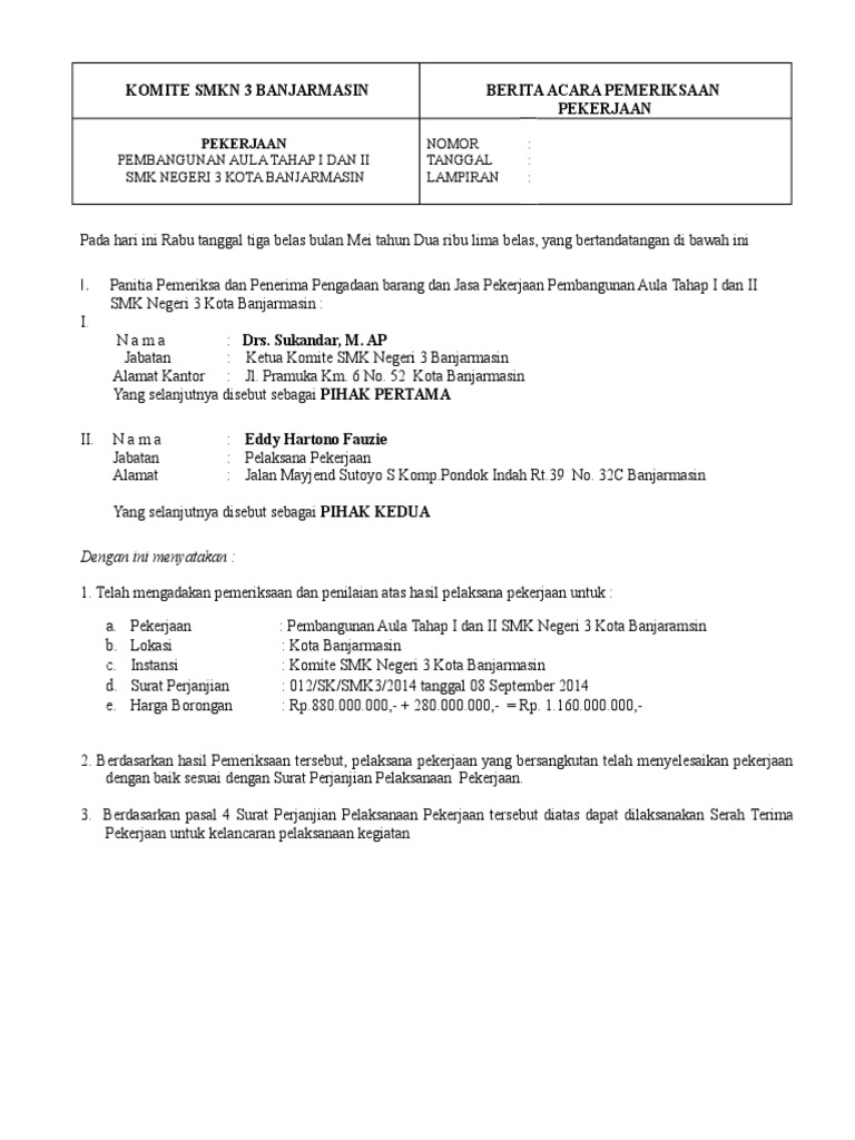 Hal ini dilakukan untuk menanggulangi perselisihan yang muncul di kemudian hari. Contoh berita acara serah terima uang kas tunai dari bendahara hasanusi. Contoh surat tanda terima dan serah terima dalam dunia kerja terutama perkantoran memang tidak lepas dengan dokumen barang dan uang yang selalu membutuhkan surat tanda terima. Contoh berita acara serah terima barang. 3 surat serah terima pekerjaan instansi pemerintah surat pernyataan orang tua. 5 contoh berita acara rapat peristiwa serah 4 contoh tanda terima pembayaran dan jabatan.
