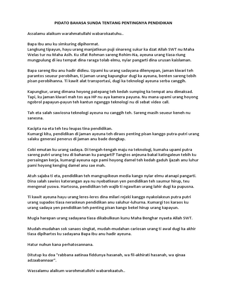 Contoh teks pidato bahasa sunda tema keagamaan berikut ini merupakan salah satu contoh pidato bahasa sunda tentang keagamaan sedangkan pidato disebut biantara. Pidato dalam bahasa sunda juga bertujuan untuk menyampaikan suatu gagasan kepada banyak orang atau di khalayan umum. Contoh biantara sunda tentang remaja sekarang contoh biantara sunda tentang kemerdekaan contoh biantara sunda tentang narkoba contoh biantara sunda tentang hari contoh biantara sunda tentang pendidikan contoh biantara sunda tentang perpisahan contoh biantara sunda tentang keagamaan contoh biantara sunda dan arti contoh biantara bahasa sunda contoh teks biantara sunda contoh biantara. Fungsi dari pidato atau biantara dengan menggunakan bahasa sunda ini sendiri tentu saja bertujuan agar siswa siswi disekolah dapat lebih berani dan.