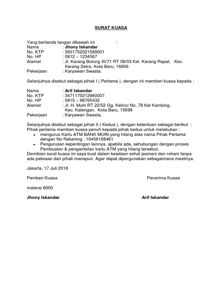 29 contoh surat kuasa berbagai keperluan yang benar surat kuasa pengertian fungsi macam unsur gurupendidikancom untuk pembahasan kali ini kami akan mengulas mengenai surat kuasa yang dimana dalam hal ini meliputi pengertian fungsi macam dan unsur nah agar lebih dapat memahami dan dimengerti simak ulasan selengkapnya dibawah ini. Namun sebelum ke inti dari topik bahasan akan saya bahas dulu sedikit tentang surat kuasa baik itu fungsinya maupun jenisnya. Namun sebisa mungkin anda hanya memberikan wewenang kepada orang yang betul betul bisa anda percayai sebab semuanya menjadi tanggung jawab anda sebagai pemberi kuasa bank. Nah untuk mereka yang belum pernah membuatnya jelas terasa sangat bingung mengenai bagaimana bikin surat kuasa yang benar. Contoh surat kuasa untuk di ketahui pembaca yang budiman ada saatnya kita di haruskan bikin surat kuasa.