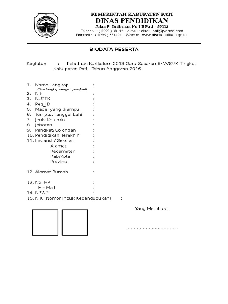Isi biodata peserta diklat fungsional untuk peserta diklat fungsional harap mengisi surat pernyataan peserta dan surat pernyataan pimpinan download. Form biodata peserta diklat teknis aplikasi simaya gelombang ke 1 bpptik 2017. Demikian surat undangan ini kami sampaikan. Dari contoh biodata raport kurikulum 2013 inipun memuat beberapa menu atau lembar terdiri dari data utama cover sampul depan identitas peserta didik isi rapor peserta didik serta keterangan. Selengkapnya bagi yang sedang membutuhkan file tersebut dilahkan dapatkan secara lengkap dan gratis dengan cara klik saja pada tautan yang telah kami cantumkan dibawah ini. Berikut ini adalah contoh biodata peserta biasanya digunakan untuk pelatihan kepemimpinan semoga bermanfaat.