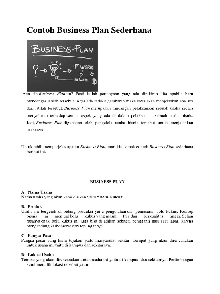 Menghadirkan ide untuk sebuah bisnis yang akan anda luncurkan memang tak selalu mudah namun terkadang kesulitan akan membawa kepada hasil yang menarik seperti munculnya ide untuk membuat makanan unik untuk usaha dan bisnis anda. Agar lebih jelas mengenai topik ini ada baiknya juga anda membaca 3 contoh bisnis plan lainnya serta presentasi usaha makanan di foodstartup indonesia. Ini beberapa usaha makanan unik. Sekarang ini persaingan dalam dunia bisnis sudah sangat ketat termasuk persaingan dalam dunia kuliner. Usaha makanana ringan sebuh peluang bisnis makanan yang dapat dicoba untuk dapat bersaing dalam bisnis makanan sekarang. Contoh bisnis plan sederhana untuk mahasiswa pada dasarnya sama seperti business plan pada umumnya yakni berupa dokumen tertulis yang disiapkan oleh wirausaha yang menggambarkan semua unsur unsur yang relevan baik internal maupun eksternal mengenai perusahaan untuk memulai sewaktu usaha.