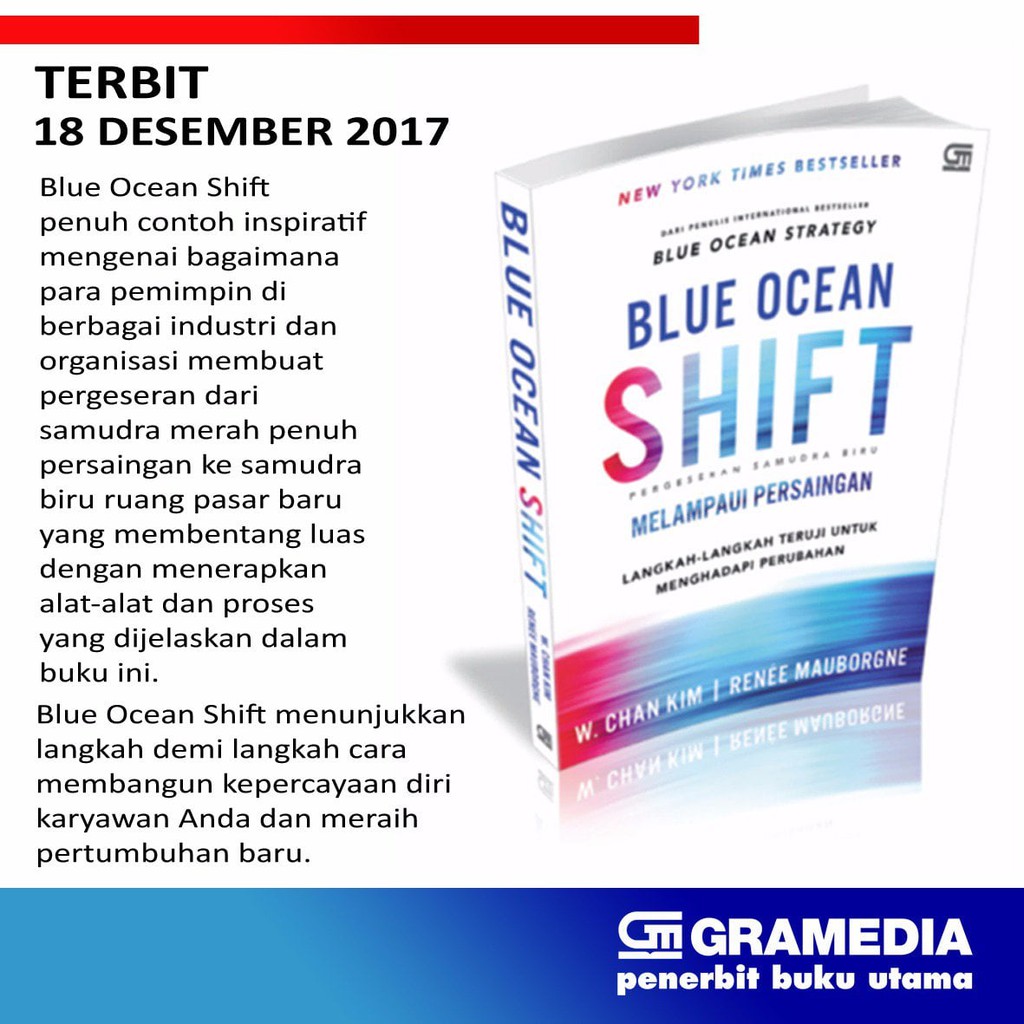Blue ocean strategy adalah sebuah siasat untuk menaklukan pesaing melalui tawaran fitur produk yang inovatif dan selama ini diabaikan oleh para pesaing. Saat kita berhasil menciptakan ruang pasar baru maka persaingan menjadi tidak lagi relevan yang. Blue ocean strategy samudra merah merupakan semua industri yang ada saat ini. Banyak pelaku bisnis karena kurangnya perhitungan dan dukungan finansial yang cukup akhirnya berhenti di tengah jalan. Blue ocean strategy merupakan buku pertamanya yang langsung laris manis diserap pasar di pelbagai penjuru dunia. Saat itu blackberry sempat merajai pasar ponsel hanya lewat fitur aplikasi chatting nya yang ia beri nama blackberry messenger bbm yang sempat populer juga di kalangan anak muda dan orang dewasa.