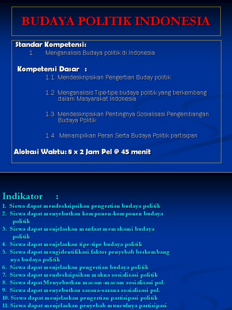 Contoh budaya politik kaula. Politik parokial pengertian budaya ciri kaula partisipan para ahli. Menganut budaya politik tertentu mungkin menjadi hal yang tidak kita sadari dan mungkin juga kita terbawa budaya politik di sekitar kita. Budaya politik kaula subjek. Istilah budaya politik meliputi masalah legitimasi pengaturan kekuasaan proses pembuatan kebijakan pemerintah kegiatan partai partai politik perilaku aparat negara serta gejolak masyarakat terhadap kekuasaan yang me merintah. Meskipun masyarakatnya masih relatif pasif namun sudah mengertia tentang adanya sistem politik serta patuh terhadap undang undang dan para aparat pemerintahan. Masyarakat dalam tipe budaya ini tetap memiliki pemahaman yang sama sebagai warga negara dan memiliki perhatian terhadap sistem politik tetapi keterlibatan mereka dalam cara yang lebih pasif.