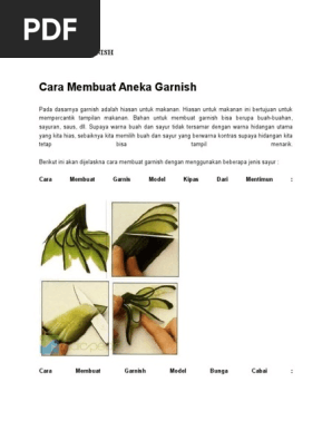 Selain menggunakan buah dan sayur membuat garnish juga bisa menggunakan berbagai saus serta cara penataan hidangan yang cantik di piring saji. Selain menggunakan buah dan sayur membuat garnish juga bisa menggunakan berbagai saus serta cara penataan hidangan yang cantik di piring saji. Selain menggunakan buah dan sayur membuat garnish juga bisa menggunakan berbagai saus serta cara penataan hidangan yang cantik di piring saji. Cara membuat garnish model kupu kupu dari lemon. Simple garnish adalah garnish yang terdiri dari satu bahan atau lebih biasanya terbuat dari sayur sayuran cereal atau makanan makanan yang sudah jadi seperti crouton bread tart dan sebagainya. Cara membuat garnish model bunga cabai.