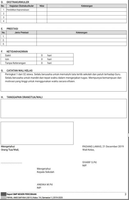 Contoh catatan wali kelas di raport. Teman temanini contoh model raport kurtilas yang saya ambil dari panduan teknis penilaian di sekolah dasar. Selalu berusaha untuk mematu tata tertib juga terhadap guru tingkatkan motivasi belajar dan kurangi aktivitas menyendiri. Kherysuryawanid beberapa contoh catatan wali kelas yang dapat di gunakan dalam penginputan di aplikasi erapor baik erapor sd erapor smp erapor smp maupun erapor smk. Contoh catatan wali kelas pada raport k13 anita catatan dari ibu untuk semester depan adalah. Contoh catatan komentar guru di raport ktsp dan deskripsi di raport 6 alasan mengapa membuat raport narasi itu sulit blog agus sampurno. Seperti yang kita ketahui bersama bahwa pada umumnya jika seorang siswa akan memasuki masa masa penerimaan rapor maka hal penting yang ditunggu tunggu ialah informasi kelulusan dan kenaikan kelas dimana ia ingin mengetahui.