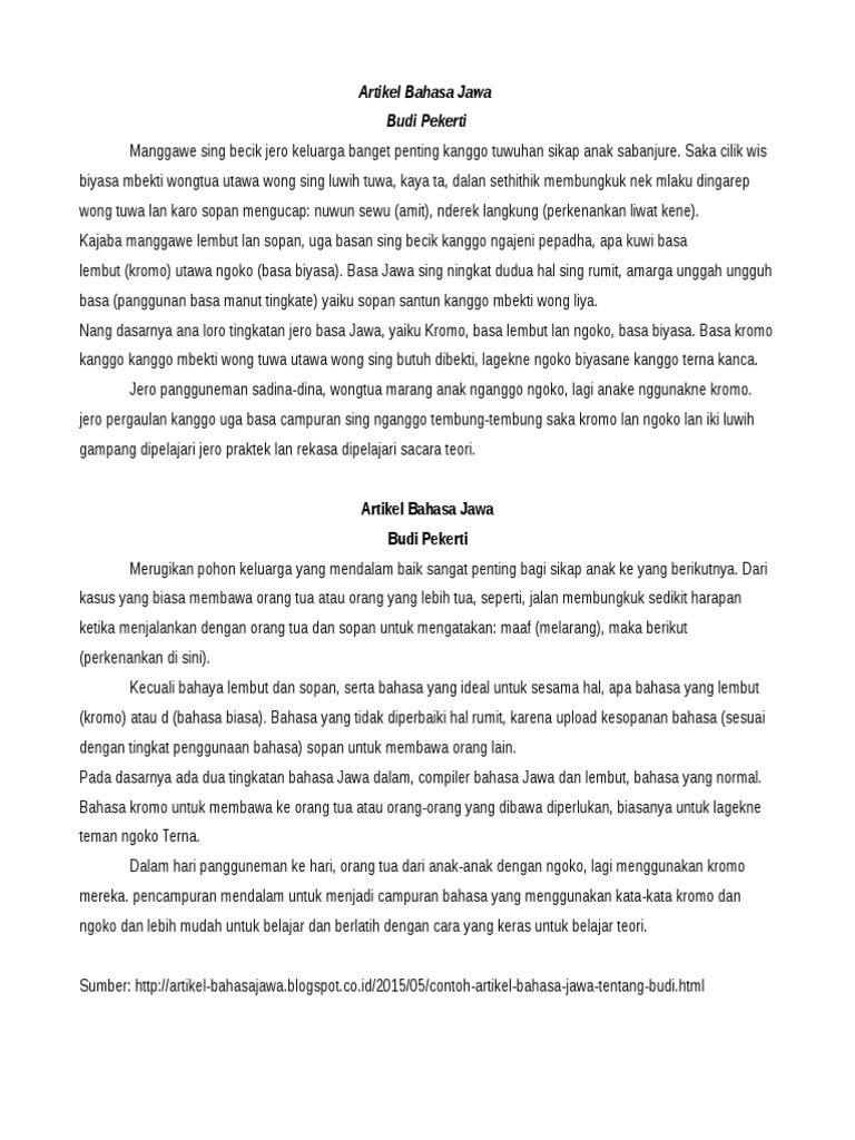 Contoh cerita pengalaman pribadi dalam bahasa jawa krama. Contoh pengalaman pribadi nganggo bahasa krama inggil posted. Korban ketlindes truk gandengan ing radin ngajeng emplasemen pabrik gulo pesantren baru dinten rebu 20 januari 2016 wingi. Kali ini saya akan membahas sekilas tentang pidato khususnya pidato bahasa jawa krama atau biasa disebut dengan sesorah dengan beberapa contoh teks pidato dalam berbagai tema pendidikan. Contoh pengalaman pribadi bahasa jawa. Jawa contoh cerita cekak bahasa jawa contoh cerita cekak bahasa jawa. 18 june 2020 152 berikut seputar informasi dan pembahasan tentang pribadi nganggo bahasa krama inggil serta mengenai contoh pengalaman tersebut tips ini adalah beberapa tutorial lain yang berhubungan dengan pribadi nganggo bahasa krama inggil contoh pengalaman yang dapat dilakukan dengan mudah dan gampang.