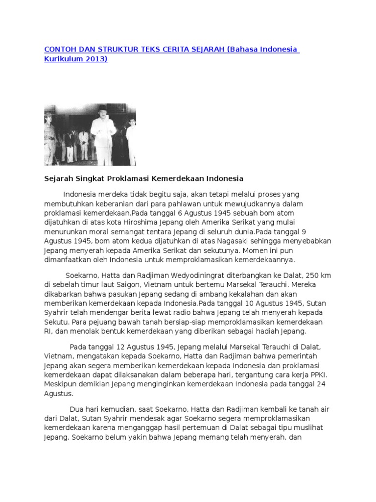 Contoh teks cerita sejarah singkat teks cerita sejarah adalah sebuah teks yang menceritakan dan juga menjelaskan sebuah kejadian atau fakta fakta yang terjadi si masa lalu. Kejadian yang diceritakan dibungkus dalam narasi runtut sesuai dengan peristiwa. Selain itu cerita fiksi bisa dikaitkan dengan kejadian kehidupan nyata. Berhubung kami akan memberikan contoh teks cerita. Untuh lebih jelasnya mengenai contoh teks cerita sejarah maka simaklah pembahasannya dibawah ini. Pada monumen ini anda dapat menemukan peninggalan pemerintah jepang dan belanda.