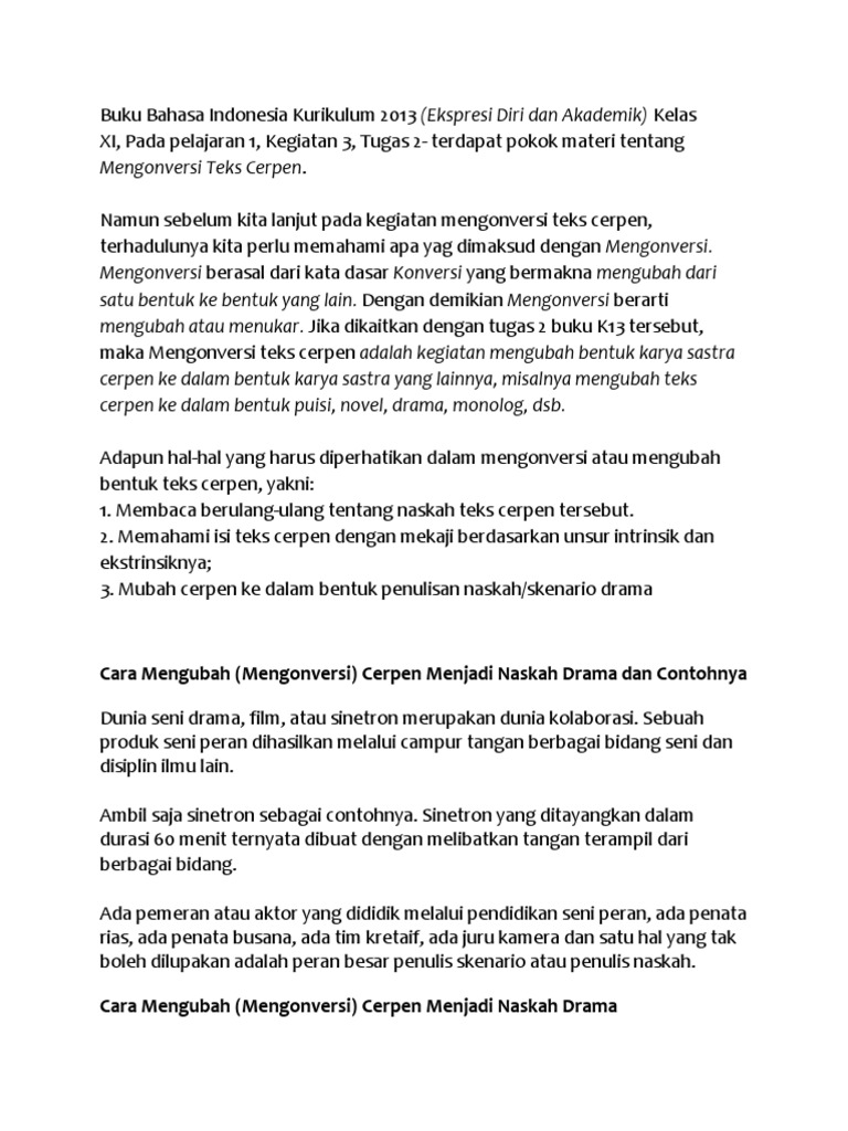 Contoh cerpen yang diubah menjadi naskah drama. Merubah cerpen menjadi naskah drama hello guys. Biasanya cerpen terdiri atas beberapa bagian yang memuat beberapa peristiwa penting yang melandasi cerita. Mengubah cerpen menjadi drama saudagar kaya saudagar kaya cerpen. Langkah langkah mengubah cerpen menjadi teks drama. Sebuah cerpen yang diubah menjadi naskah drama. A pahami tema atau ide pokok cerpen yang akan diubah menjadi naskah drama.