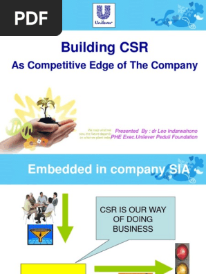 Unilever sudah menerapkan pola regionalisasi karena unilever telah memilikipabrik pabrik atau juga cabang perusahaan di tiap tiap negara. Csr corporate sosial responbility adalah suatu mekanisme sebuah perusahaan untuk secara sadar mengintegrasikan perhatiannya terhadap lingkungan sosial ke dalam operasi dan interaksinya dengan stakehilder yang melampaui tanggung jawab sosial khususnya di bidang hukum. Perilaku ini diterapkan dalam kegiatan perusahaan sehari haritahun 2003 pt. Simak ulasan berikut dibawah ini. Pengertian csr csr adalah sebuah konsep yang tidak hadir secara instan. Ptunilever indonesia telah banyak melakukan beberapa program csr corporate social responsibility sebagai bentuk tanggung jawab yang tinggi terhadap masyarakat secara.