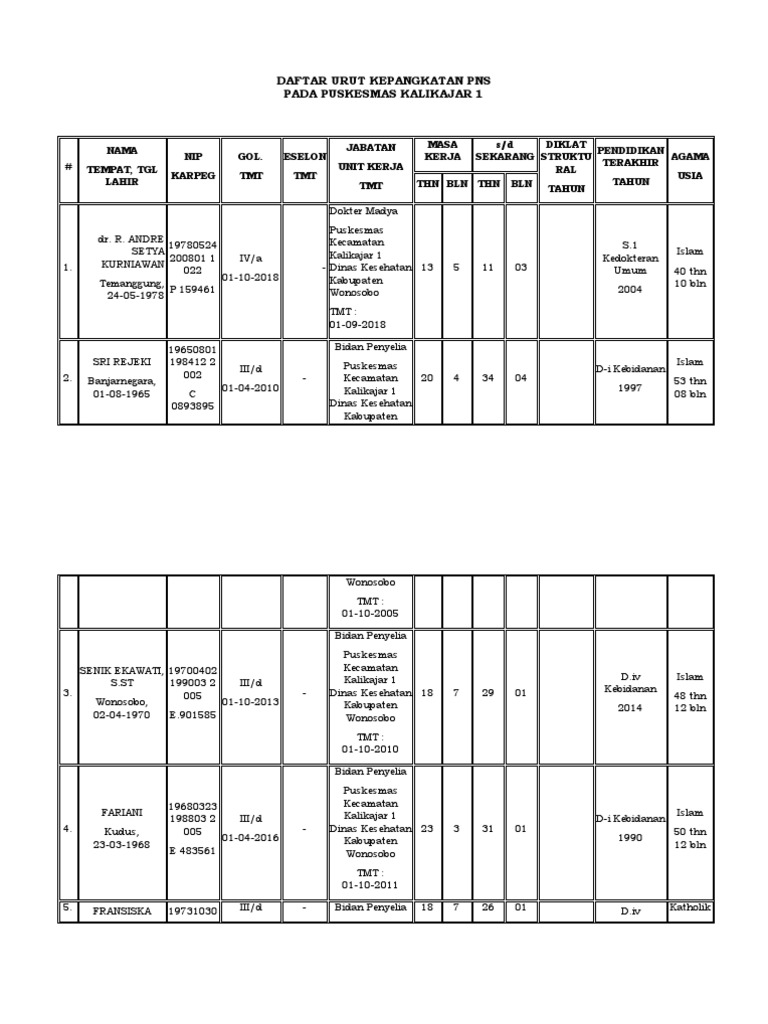 Contoh Daftar Urut Kepangkatan Duk Pns Terbaru Resep Ku Ini