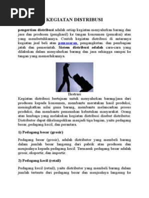 Itu bisa disebut dengan kegiatan distribusi. Dalam distribusi ini produsen menggunakan jasa distributor dalam pemasaran barangnya ke konsumen. Pengertian distribusi secara umum dan menurut. Ia bisa menitipkan roti rotinya di toko atau kios untuk dijual kepada konsumen. Ada beberapa hal yang menjadi alasan dilakukannya distribusi ini seperti. Umumnya perusahaan yang memilih distribusi jenis ini adalah perusahaan khusus yang membuat barang.