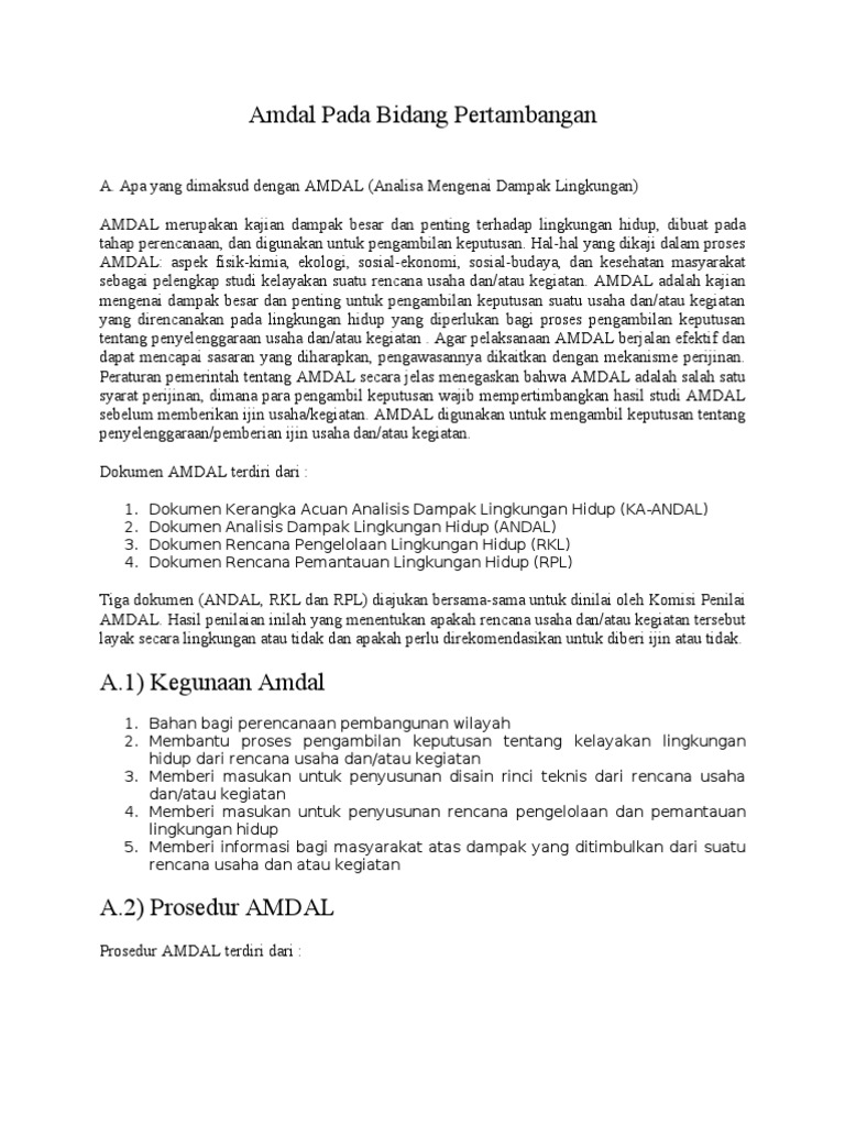 Potensi masalah potensi konflik kendala sumber daya alam pengaruh kegiatan sekitar terhadap proyek dengan amdal pemrakarsa dapat menjamin. 2 januari 2016 faqoth12 tinggalkan komentar. Ka andal dan andal review. Amdal bagian integral dari studi kelayakan kegiatan pembangunan amdal menjaga keserasian hubungan antara berbagai kegiatan agar dampak dapat diperkirakan sejak awal perencanaan amdal berfokus pada analisis. Berikut adalah file literatur tentang amdal tanpa password bila anda sedang mencari info. Pencetakan sawah peternakan perikanan kolam air deras perkebunan.