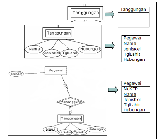 Dari entitas nama yaitu nama depan nama tengah dan nama belakang. Atribut nama merupakan composite attribute. Entitas dari nama yaitu nama depan nama tengah dan nama belakang. Atribut kunci merupakan atribut unik dari suatu entitas dan nilai dari atribut kunci akan berbeda untuk masing masing entitas. Atribut turunan merupakan atribut yang didapat dari atribut lainnya. Atribut null value tidak mempunyai nilai.