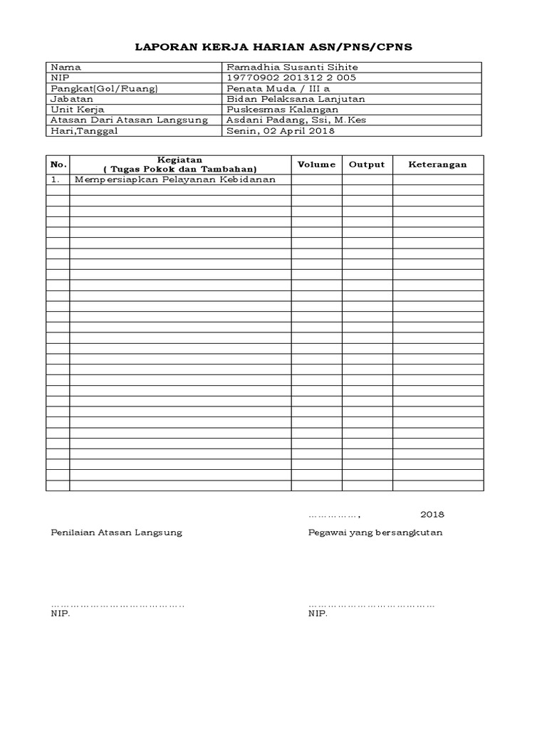 Contoh format laporan kerja harian. Academiaedu is a platform for academics to share research papers. Aplikasi laporan kinerja ini excelmaniacsid buat berdasarkan permintaan seorang rekan yang berasal dari kementerian agama yang membutuhkan sebuah aplikasi sederhana tentu sebuah aplikasi berbasis microsoft office excel yang dapat memudahkannya membuat sebuah laporan kinerja baik laporan kinerja harian maupun laporan kinerja bulannya. Contoh surat perjanjian kerja harian lepas surat perjanjian kerja harian lepas nomer. Waktu masuk waktu pulang uraian kegiatan terus rekap tersebut adalah tanda tangan. Download gratis contoh sop hrd. Laporan kerja it support.