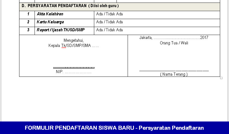 Sebagai contoh formulir penerimaan siswa baru ppdb anda dapat menggunakan contoh format tahun lalu namu di sarankan untuk anda agar menggunakan formulir ppdb dengan menggunkan formulir dapodik tahun 20202021 yang sudah di sesuaikan dengan aplikasi dapodik versi 2020b. Dari mulai membentuk panitia psb penerimaan siswa baru atau ppdb penerimaan peserta dididk baru hingga persiapan teknis pada saat membuka pendaftaran seperti administasi dan sebagainya. Contoh formulir pendaftaran siswa baru misalnya formulir ppdb sd 2017 masih merupakan perangkat administrasi psb seringkali dibutuhkan saat pelaksanaan kegiatan penerimaan peserta didik baru ppdb setiap awal tahun pelajaran. To enable screen reader support press ctrlaltz to learn about keyboard shortcuts press ctrlslash. Format file dari formulir penerimaan siswa baru bagi sd maupun smp kali ini sengaja saya share dalam format word ukuran f4 agar file dapat diedit sedemikian rupa menyesuaikan identitas sekolah maupun pengeditan dalam bagian bagian lain yang diperlukan mohon koreksi dari teman teman edukasi semuanya apabila ditemukan kesalahan untuk segera diperbaiki berdasarkan kebutuhan. Download contoh formulir pendaftaran paud tk kb tpa sps format doc yang dapat di edit.