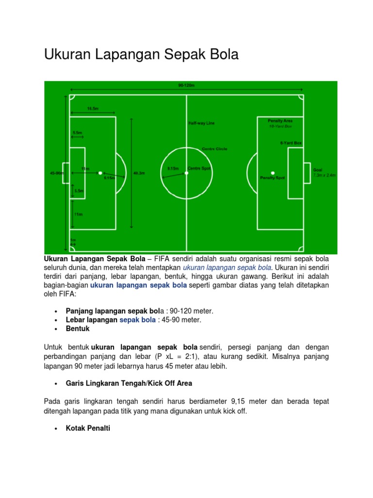 Dibutuhkan sebuah tempat atau lapangan untuk bermain. Mungkin jika sobat sedang menacari contoh dari model kaos olahraga yang bagus serta kekinian di tahun 2020 yang akan datang. Ukuran lapangan sepak bola pada kali ini yuksinaucoid akan menerangkan materi tentang ukuran lapangan sepak bola yang mana pembahasanya meliputi pengertian cara bermain peraturan teknik dasar contoh gambar lapangan dan berita tentang dunia olah raga secara lengkap. Fifa selaku induk sepakbola internasional pun sudah menetapkan standar ukuran lapangan permainan sepak bola. Rumput lapangan sepakbola umumnya adalah rumput alami meskipun ada juga lapangan yang sudah menggunakan rumput sintetis. Sepak bola adalah permainan sepak bola yang dimainkan antara dua tim dengan 11 pemain per tim.