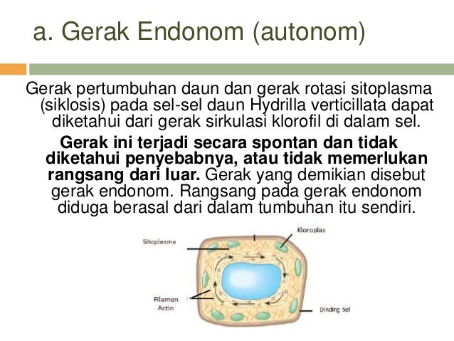 Contoh gerak endonom pada tumbuhan. Contoh dari dari gerak higroskopis ini adalah membukanya sel anulus pada sporangium tumbuhan paku serta juga membukanya gigi peristom pada sporangium tumbuhan lumut. Sistem gerak pada tumbuhan secara endonom terjadi tanpa ada pengaruh dari lingkungan. Nah dibawah ini merupakan beberapa 5 contoh gerak endonom tersebut. Gerak endonom gerak endonom yakni suatu gerakan pada tumbuhan yang dipengaruhi oleh sebuah rangsangan dari dalam tumbuhan. Jika disimpulkan gerak tersebut terjadi akibat dari tumbuhan itu sendiri. Gerak pada tumbuhan dibedakan menjadi 2 macam yaitu gerak endonom dan gerak esionom.
