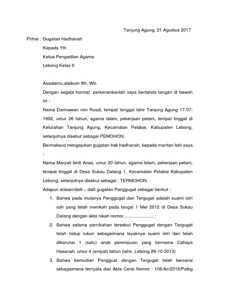 Suami tetap bisa mendapatkan hak yang sama terlebih jika pihak pengadilan menemukan bahwa istri atau ibu memiliki kebiasaan atau pola asuh yang tidak baik untuk pertumbuhan dan perkembangan sang buah hati. Academiaedu is a platform for academics to share research papers. Lumatul khoiroh spd binti mohammad taufiq. Dalam gugatan yang diajukan pun istri berhak untuk meminta hak asuh anak. Contoh surat gugat dan jawaban gugat hak asuh anak perihal. Meski demikian bukan berarti hak pengasuhan anak ini akan langsung jatuh ke tangan istri atau ibu.