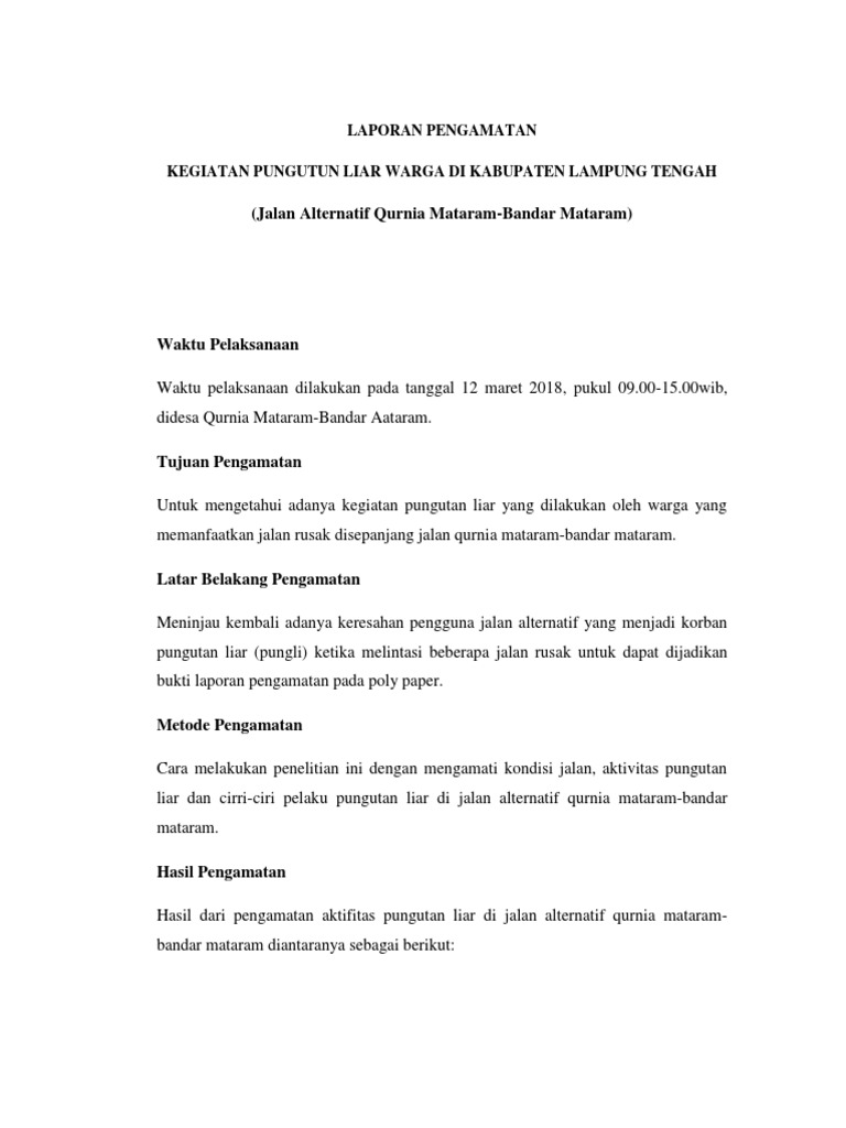Membuat laporan sederhana sudah dibelajarkan di sekolah dasar kelas 5. Kaliurang yogyakarta waktu pengamatan. Contoh teks hasil observasi pengamatan tentang narkoba narkoba menyerang generasi bangsa narkoba merupakan bahan berbahaya yang jika disalah gunakan akan mengakibatkan ketergantungan pada pemakainya dan pada akhirnya akan membawa pada kematian jika dikonsumsi secara terus menerus. Buatlah kerangka laporan hasil pengamatan. Membuat laporan sederhana dan singkat sudah diajarkan saat kita sekolah dasar sd ataupun sekolah menengah pertama smp. Gunung merapi meletus mengeluarkan awan panas b.