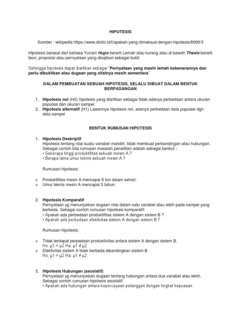 Secara umum hipotetsis berasal dari bahasa yunani yaitu dari kata hypo yang berarti di bawah dan thesis yang berarti pendirian pendapat atau kepastian. Berenson et al 2006 menyatakan beberapa poin penting tentang hipotesis nol dan hipotesis alternatif sebagaimana dirinci sebagai berikut. Hipotesis non dan alternatif contoh. Hipotesis kerja h1 hipotesis kerja h1 adalah hipotesis yang. Artinya dalam rumusan hipotesis yang diuji adalah ketidakbenaran variabel x mempengaruhi y. ü ada hubungan langsung variabel gaya kepemimpinan dengan ketidakpastian lingkungan bisnis.