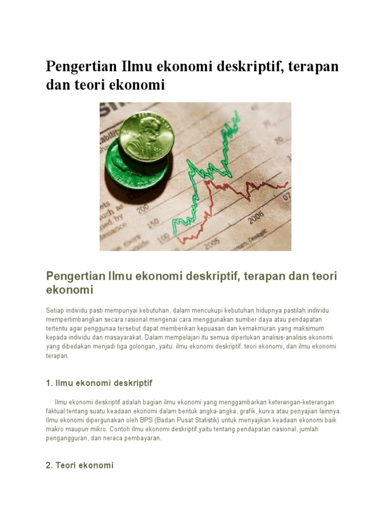 Ekonomi indonesia pada tahun 70 an. Contoh jurnal inilah contoh artikel tentang ekonomi deskriptif yang anda perlukan. Industri katun di india sistem pertanian di bali dan seperti keadaan petani di jawa tengah. Contoh ilmu ekonomi deskriptif adalah krisis moneter di indonesia yang terjadi pada tahun 1998. Ilmu ekonomi teori. Definisi teori ekonomi adalah suatu konsep pemikiran yang diperoleh dari data dalam kehidupan ekonomi kemudian disusun diolah dan dianalisis sehingga menjadi kesimpulan bersifat umum.