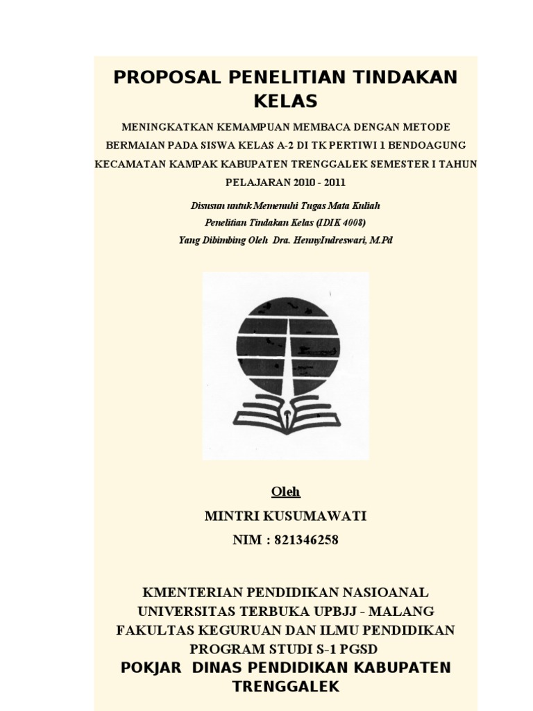 Namun jika tidak berminat memilikinya minimal bisa menjadi contoh contoh judul ptk paud untuk menginspirasi dibuatnya judul baru. Contoh ptk paud sebanyak 100 judul kami persembahkan buat para mahasiswa khususnya yang sedang menyelesaikan skripsi dan membutuhkan banyak referensi penelitian tindakan kelas ptk yang sudah jadi. 14 contoh proposal ptk paud. Pengertian penelitian tindakan kelas. Peningkatan keterampilan bicara anak usia 3 4 tahun melalui metode bercerita wayang beber tematik di kelompok bermain al jauhariyyah muslimat nu kajen margoyoso pati. Pendahuluan latar belakang masalah anak usia dini adalah anak yang berada dalam rentang usia 0 6 tahun.