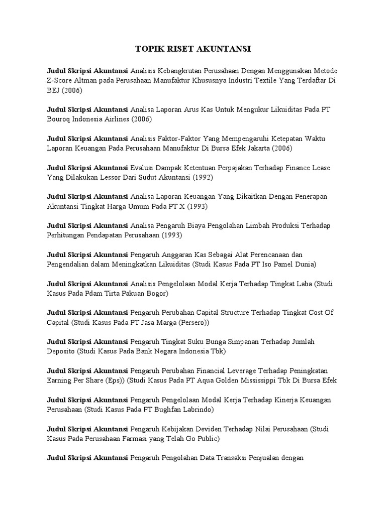 Contoh judul skripsi akuntansi sektor publik. Skripsi akuntansi sektor publik. Daftar kumpulan judul skripsi akuntansi sektor publik terbaru mudah dikerjakan jika temen temen membutuhkan daftar skripsi akuntansi tentang sektor publik maka berikut ini adalah judul judul yang bisa temen temen manfaatkan sebagai bahan pertimbangan judul skripsi kita. Kumpulan judul skripsi akuntansi sektor publik terbaru penulis lalu ariz ramdani. Judul skripsi akuntansi sektor publik berikut ini adalah contoh artikel jurnal penelitian akuntasi keuangan yang merupakan kumpulan file dari berbagi sumber jurnal nasional tentang judul skripsi akuntansi sektor publik yang bisa bapakibu gunakan dan diunduh secara gratis dengan menekan tombol download biru dibawah ini. Daftar kumpulan judul skripsi akuntansi sektor publik terbaru mudah dikerjakan jika temen temen membutuhkan daftar skripsi akuntansi tentang sektor publik maka berikut ini adalah judul judul yang bisa temen temen manfaatkan sebagai bahan pertimbangan judul skripsi kita. Contoh jurnal inilah jurnal akuntansi sektor publik pdf yang anda perlukan.