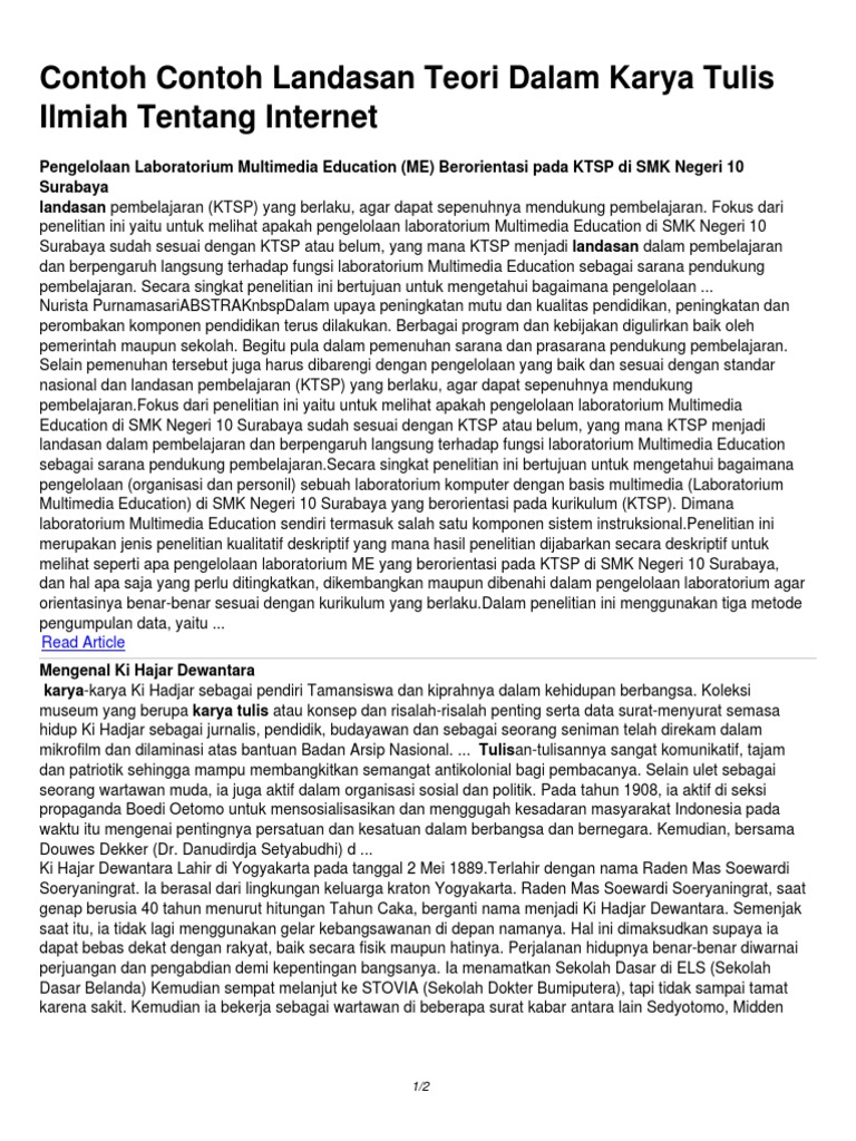 Contoh kajian pustaka dalam pembahasan ini merupakan contoh yang diekstrak dan disimpulkan dari format laporan penelitian imiah seperti skripsi tesis disertasi dan jurnal akademik. Kajian teori juga dapat memudahkan peneliti dalam proses penyusunan instrumen penelitian yang akan digunakan dalam kegiatan pengumpulan data. Teori dalam penelitian ini harus valid dan otentik sehingga tidak boleh hanya berdasarkan perkiraan atau asumsi. Salah satu bab dalam skripsi adalah bab ii yang diberi judul landasan teori atau tinjauan pustaka. Abstrak penelitian merupakan aktivitas ilmiah untuk menghasilkan temuan baru dalam berbagai bidang keilmuan.