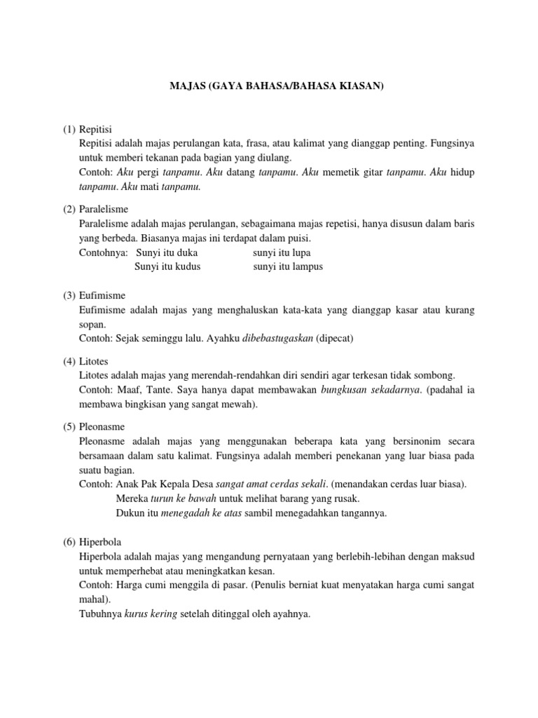 Majas Pengertian Macam Macam Contoh Materi Lengkap