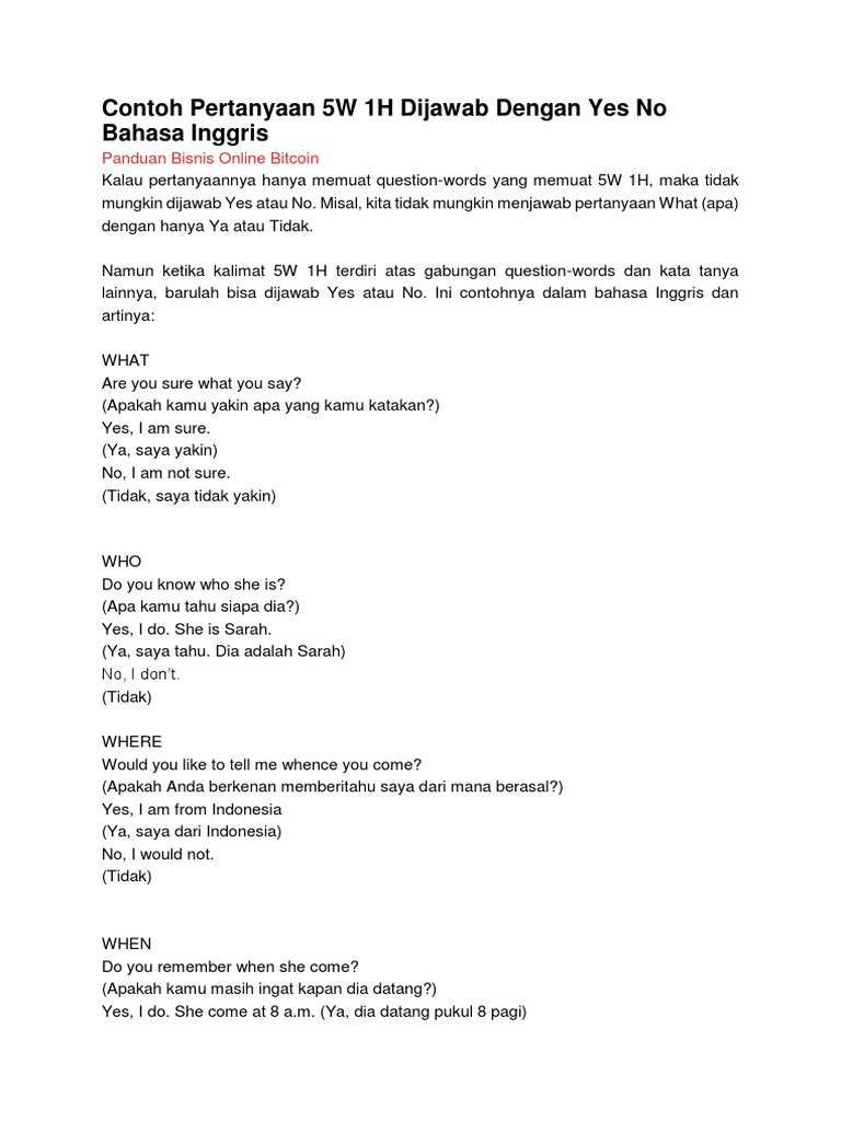 I want to continue my college in the university of indonesia. She reads a book. Contoh kalimat tanya dalam bahasa inggris. 5w 1h memudahkan anda untuk menyusun pertanyaan maupun menjawab pertanyaan yang memiliki tujuan dan maksud yang jelas dan terarah. Contoh kalimat tanya dalam bahasa inggris beserta arti dan jawabannya sebagaimana kalimat pada bahasa lainnya dalam bahasa inggris kalimat juga dapat dibentuk menjadi sebuah pertanyaan. Kalimat positif negatif dan introgatif merupakan 3 kalimat yang paling umum kita temukan bahkan hampir disetiap kalimat baik bahasa indonesia maupun bahasa inggris.