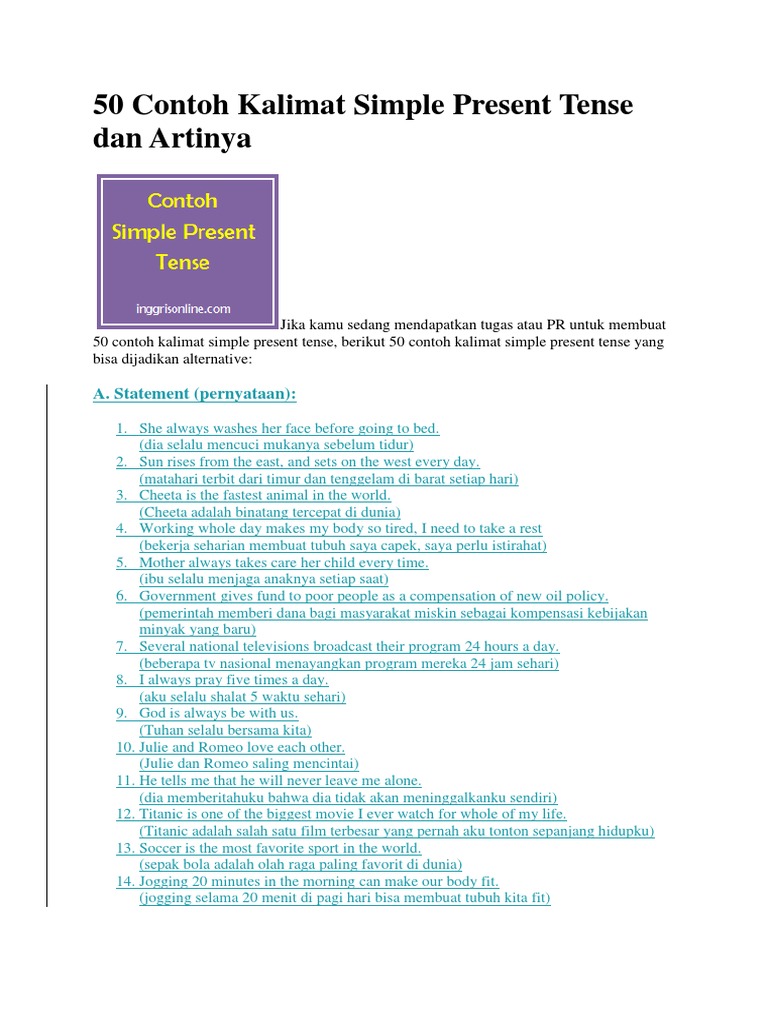 Contoh kalimat tenses dan artinya. Simple present tense in active voice and. Well that is simple present tense. 90 contoh kalimat tenses dan artinya rumus materi lengkap bahasa inggris tentang contoh kalimat tenses beserta artinya agar lancar bahasa inggris. Semoga 15 contoh kalimat simple past tense positif negatif dan interogatif diatas dapat membantu kalian ya. Regular verb list hi guys. Beberapa contoh kalimat simple past tense berikut ini saya bagi dalam bentuk positif negatif dan interrogatif dalam format kalimat verbal dan nominal disertai dengan artinya.
