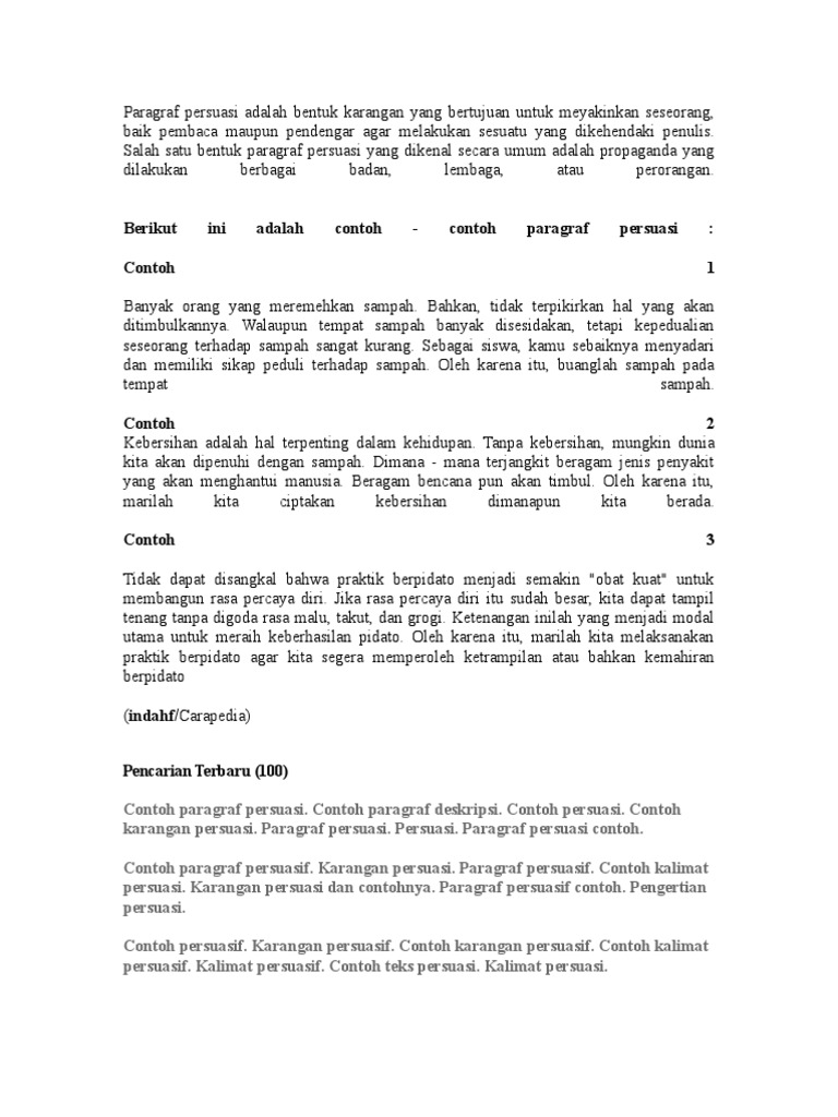 Adapun contoh paragraf persuasi panjang maupun singkat bisa kamu baca di sini. Contoh paragraf argumentasi sebenarnya apasih yang dimaksud paragraf argumentasi jangan jangan anda lupa atau malah belum paham dengan paragraf argumentasi.