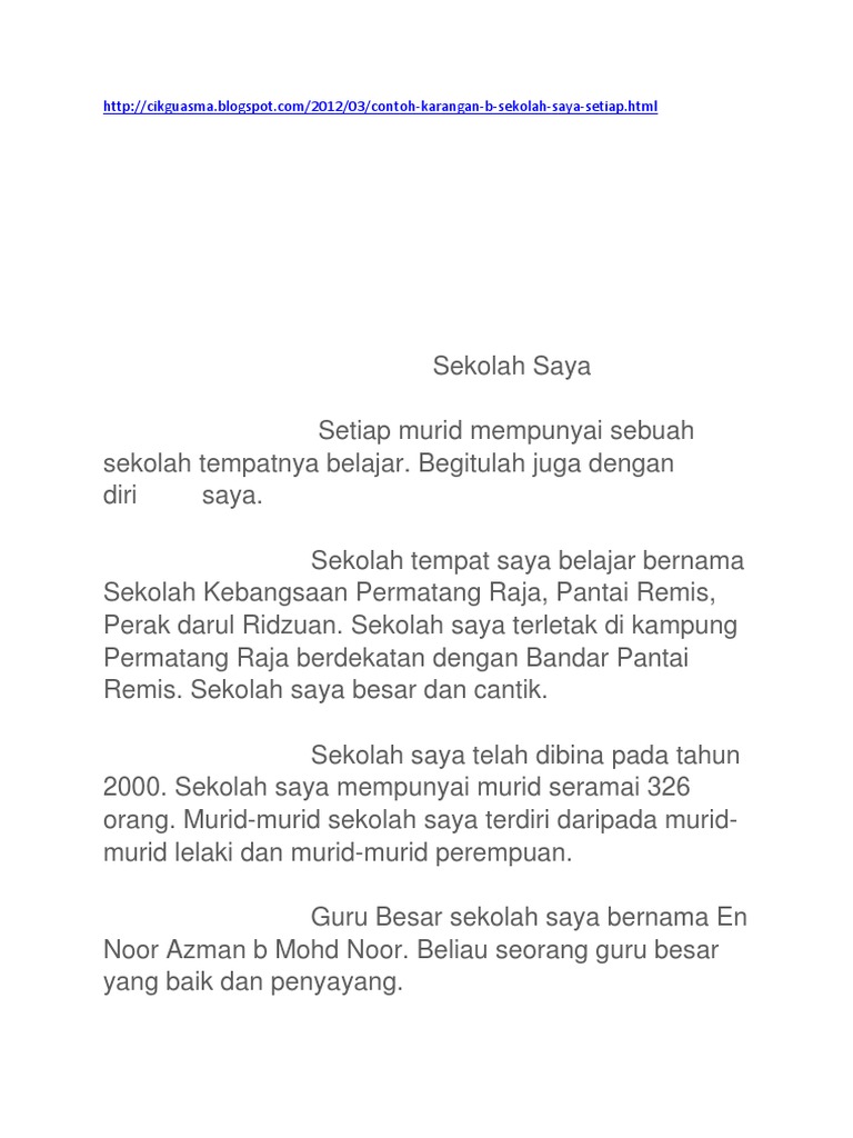 Sekolah saya di kuala lumpur. Guru besar sekolah saya ialah encik hong kong yean. Without school we will never able write even a word. Saya berusia 16 tahun dan merupakan seorang pelajar tingkatan empat di sekolah menengah kebangsaan seri mutiara. Untuk pembahasan kali ini kami akan memberikan ulasan mengenai contoh karangan narasi yang dimana dalam hal ini meliputi contoh tentang pendidikan liburan lingkungan guru sekolah dan pengalaman pribadi nah agar lebih dapat memahami dan mengerti simak ulasan selengkapnya dibawah ini. Seperti halnya contoh temen kalian yang dua ini yang berhasil membuat karangan tentang liburan sekolahnya saat hanya bisa di rumah.