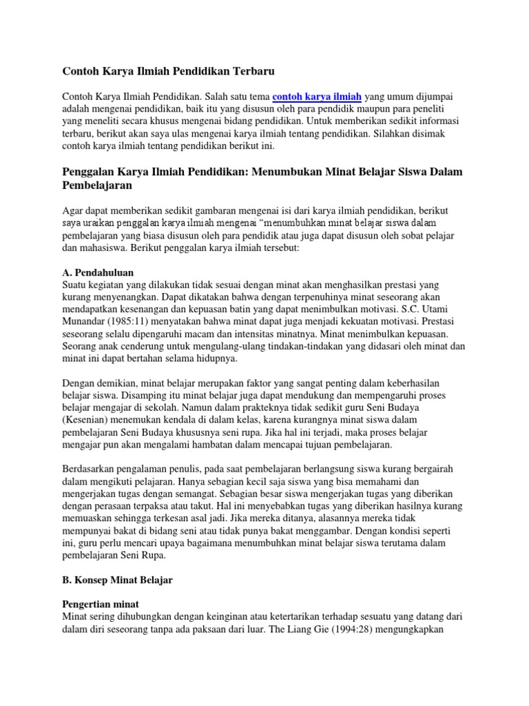 Contoh karya ilmiah pendidikan. Contoh karya ilmiah oleh dosen pendidikan 2 diposting pada 13042020 13042020. Berikut ini adalah salah satu contoh makalah karya ilmiah tentang pendidikan terbaru tentang dampak globalisasi terhadap pendidikan 2017 yang dapat kamu download secara gratis. Contoh karya ilmiah tentang pendidikan sobat pembaca blog kajian teori kali ini saya ingin berbagi mengenai contoh karya ilmiah tentang pendidikan setelah yang lalu sudah membahas tentang pengertian karya ilmiahpenulisan karya ilmiah memang harus dipahami oleh para insan pendidikan karena dengan adanya karya ilmiah kita menjadi kritis terhadap sesuatu terutama tentang. Dalam literatur lain disebutkan bahwa karya tulis ilmiah adalah serangkaian kegiatan penulisan yang didasarkan pada. Contoh karya ilmiah pendidikan 2016 karya ilmiah merupakan sebuah laporan tertulis dan diterbitkan yang memparkan hasil dari penelitian atau pengkajian yang telah di lakukan oleh seseorang atau tim dengan memenuhi kaidah dan etika keilmuan yang telah di kukuhkan. Salah satu contoh karya ilmiah tentang pendidikan adalah skripsi.