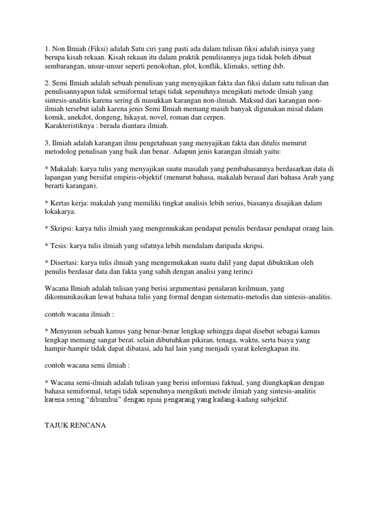 Karya tulis ilmiah dapat berupa hasil penelitian dan ulasan atau gagasan ilmiah. Adapun sifat sifat dari sebuah karya tulis ilmiah itu adalah. Mulai dari contoh karya tulis ilmiah yang populer contoh karya tulis ilmiah yang sederhana. Bagian bagiannya lengkap singkat dan jelas. Melihat jenis jenis karya tulis ilmiah yang telah disebutkan sebelumnya kita dapat menyimpulkan bagaimana sifat dari karya tulis ilmiah itu. Contoh karya tulis ilmiah contoh kti karya tulis ilmiah sangat banyak jenisnya mulai dari artikel ilmiah makalah proposal skripsi tesis desertasi laporan penelitian dan lain sebagainya yang memiliki kaitan dengan sebuah karya tulis yang bersifat ilmiah.