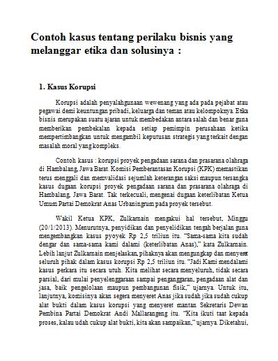 Carilah contoh kasus tentang perilaku bisnis yang melanggar etika solusinya. Contoh kasus pelanggaran etika bisnis. Etika dan norma bisnis adalah suatu bagian yang tidak dapat dipisahkan dalam kegiatan bisnis yang dilakukan oleh para pelaku pelaku bisnis. Karena dalam berbisnis perusahaan meyakini prinsip bisnis yang baik adalah bisnis yang beretika yakni bisnis dengan kinerja unggul dan berkesinambungan yang dijalankan dengan mentaati kaidah kaidah etika sejalan dengan hukum dan peraturan yang berlaku. Contoh kasus pelanggaran etika bisnis krisis yang dialami bank century bukan disebabkan karena adanya krisis global tetapi karena disebakan permasalahan internal bank tersebut. Atau bisa juga diartikan pengetahuan tentang tata cara ideal dalam pengaturan dan pengelolaan bisnis yang memperhatikan norma dan moralitas yang berlaku secara universal secara.