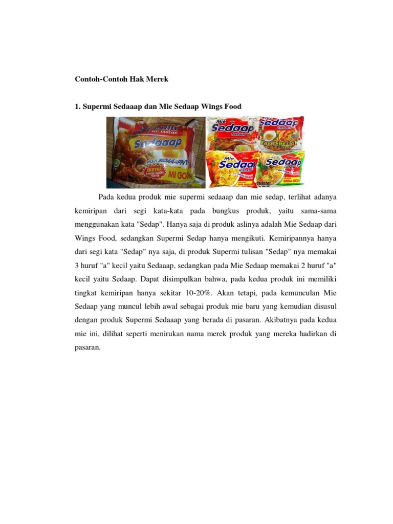 Hal tersebut menjadi permasalahan dalam kasus merek. Dari contoh kasus hak paten diatas bahwa sepeda motor bajaj dan honda terkait hak paten penggunaan dua busi dalam satu silinder telah digunakan pada mesin sepeda motor bajaj. Baru baru ini pertarungan hak paten antara samsung dengan apple di pengadilan nampaknya semakin meluas. J habibie dengan auronautika. Pihak direktorat jenderal hki menolak permohonan merek cap kaki tiga karena merek tersebut menyerupaitiruan pada singkatan nama bendera lambang atau simbol nasional maupun internasional. Hak ini bersifat eksklusif dalam arti hak yang hanya bisa dijalankan oleh orang yang memegang hak paten orang lain dilarang melaksanakannya tanpa persetujuan pemegang paten ø contoh kasus pvt seorang petani jagung bernama budi purwo utomo terpaksa menjalani sidang di pengadilan negeri kediri dan menerima putusan bersalah atas tuduhan tindak pidana turut serta melakukan sertifikasi tanpa izin.