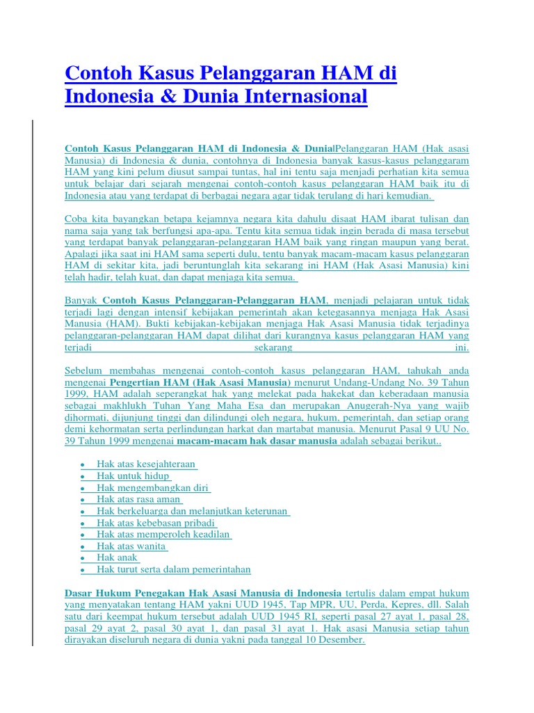 Contoh kasus ham di indonesia. Munir lahir di malang tanggal 8 desember 1965. Yang termasuk dalam pelanggaran ham diantaranya pembunuhan dan pelecehan berikut penjelasan mengenai pelanggaran ham serta contoh kasus. Pelanggaran ham di indonesia. Munir meninggal pada tanggal 7 september 2004 di dalam pesawat garuda indonesia ketika ia sedang melakukan perjalanan menuju amsterdam belanda. Beberapa di antaranya bahkan hingga menimbulkan banyak korban yang berjatuhan. Kasus pelanggaran ham jika berbicara mengenai kasus pelanggaran ham di indonesia pasti yang terlintas pertama kali adalah hilangnya beberapa aktivis di era orde baru atau kerusuhan mei 98peristiwa tersebut sangat membekas di pikiran orang yang ditinggalkan bahkan beberapa ada yang belum jelas kasusnya.