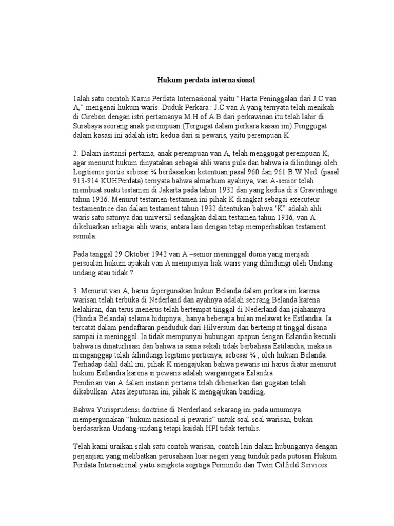 Contoh kasus hukum perdata internasional kasus ipb dan amerika. Hukum waris di indonesia telah diatur dan penerapannya merujuk kepada ketentuan yang tertulis di kitab undang undang hukum perdata kuhperdata.