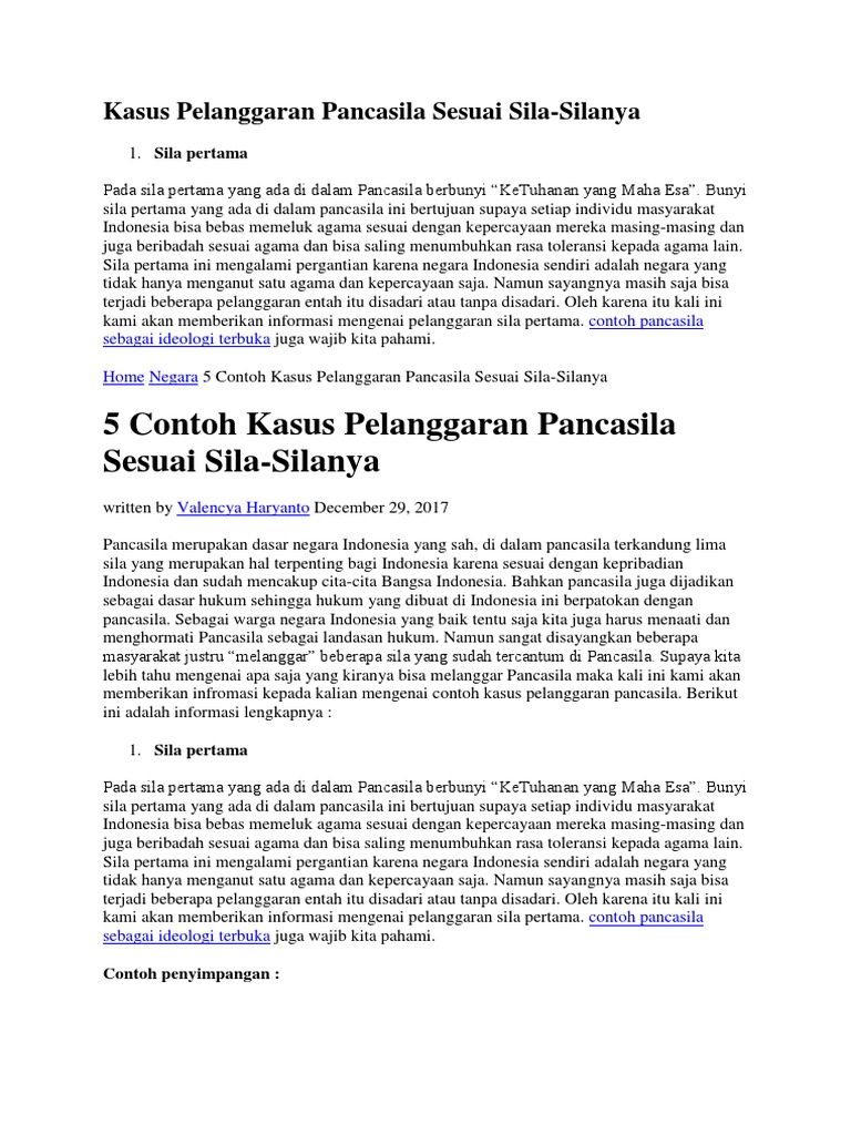 Contoh kasus pelanggaran pancasila. Maya nursakinah npm. Contoh makalah pendidikan pancasila. Kasus kasus pelanggaran ham dalam perspektif pancasila adalah materi pelajaran pendidikan kewarganegaraan ppkn yang akan dijelaskan secara lengkap pada artikel dibawah ini. Adapula beberapa kasus pelanggaran pancasila sila ke 2 yang pernah terjadi. Adapun sub pembahasan didalam materi hak asasi manusia ham yang akan diuraikan yakni. Sila ketuhanan yang maha esa.