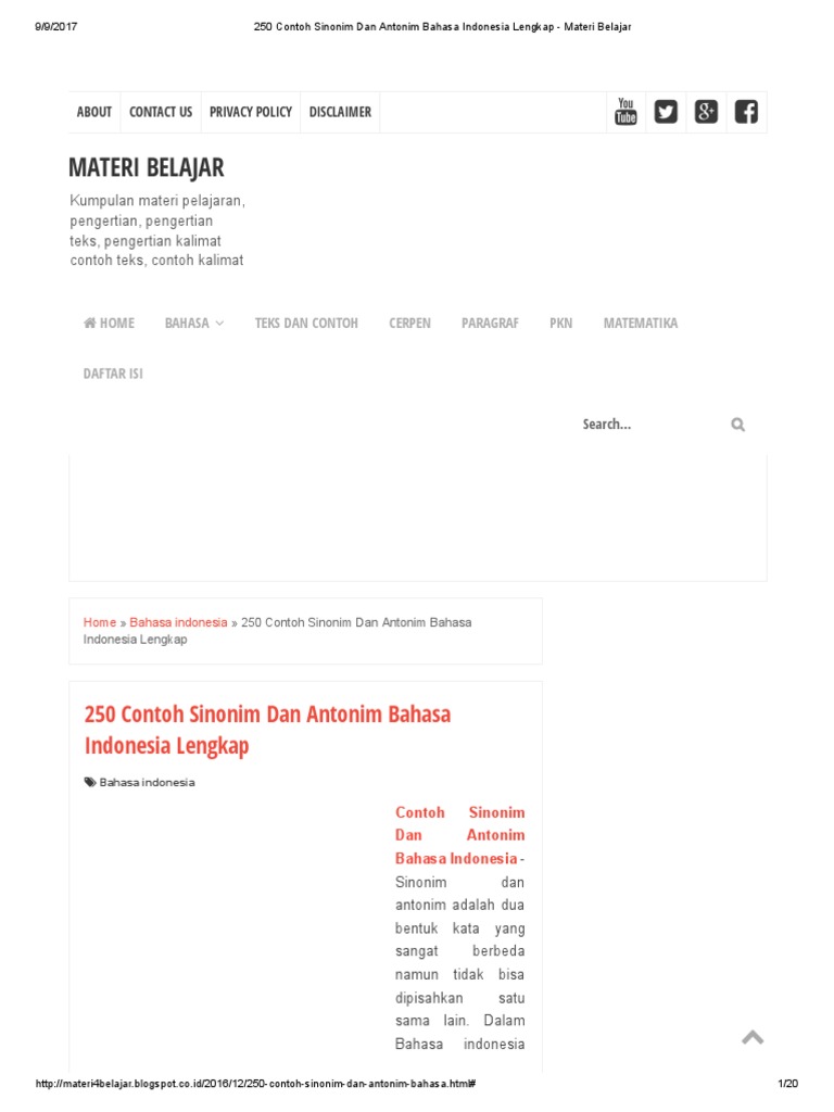 Contoh kalimat sinonim dan antonim lengkap dengan artinya di atas semoga dapat menambah wawasan pembaca. Pada artikel ini terdapat contoh sinonim dan antonim dalam bahasa inggris. Pengertian antonim adalah lawan kata dari sedikit penjelasan di atas sinonim dan antonim adalah 2 hal yang berbeda dalam penggunaannya. Hubungan kemaknaan itu bisa seperti persamaan kata sinonim dan lawan kata antonim. Berikut bahasan kita mengenai contoh kalimat antonim sinonim dan hiponim dalam bahasa indonesia. Secara semantik verhaar 1983133 mengatakan.