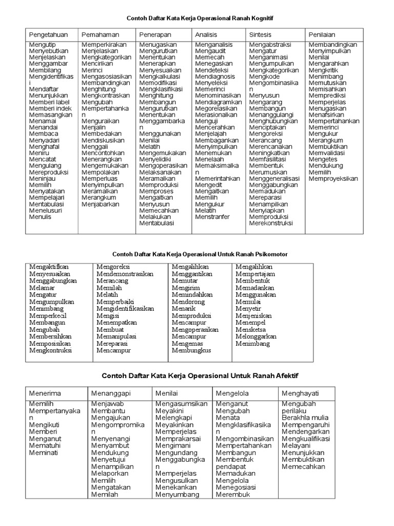 Yang bisa digunakan untuk melengkapi administarsi guru yang dapat di unduh secara gratis dengan menekan tombol download. Kata kerja operasional diperlukan oleh guru saat menyusun silabus dan rpp. Berikut ini adalah contoh. Kata kerja operasional kko edisi revisi teori bloom ranah kognitif mengingat c1 mengetahui. Kata kerja operasional kognitif. Bertanya menyumbang ide atau berpendapat menjadi pendengar yang baik berkomunikasi dll.