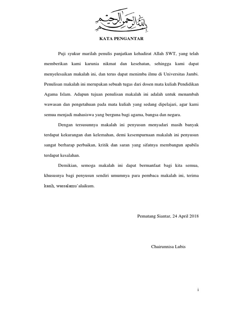 Segala puji hanya milik allah swt. Contoh kata pengantar makalah agama islam. Demikianlah tugas ini saya susun saya menyadari masih banyak terdapat kekurangan dalam penyusunan tugas ini kepada para mahasiswa jurusan ilmu pendidikan khususnya prodi pgsd serta dosen yang telah membimbing dalam pembuatan makalah ini saya ucapkan terima kasih. Adapun tujuan dari penulisan dari makalah ini adalah untuk memenuhi tugas dosenguru pada bidang studimata kuliah nama bidang studimata kuliahselain itu makalah ini juga bertujuan untuk. Segala puji hanya milik allah swt. Agama sebagai sistem.