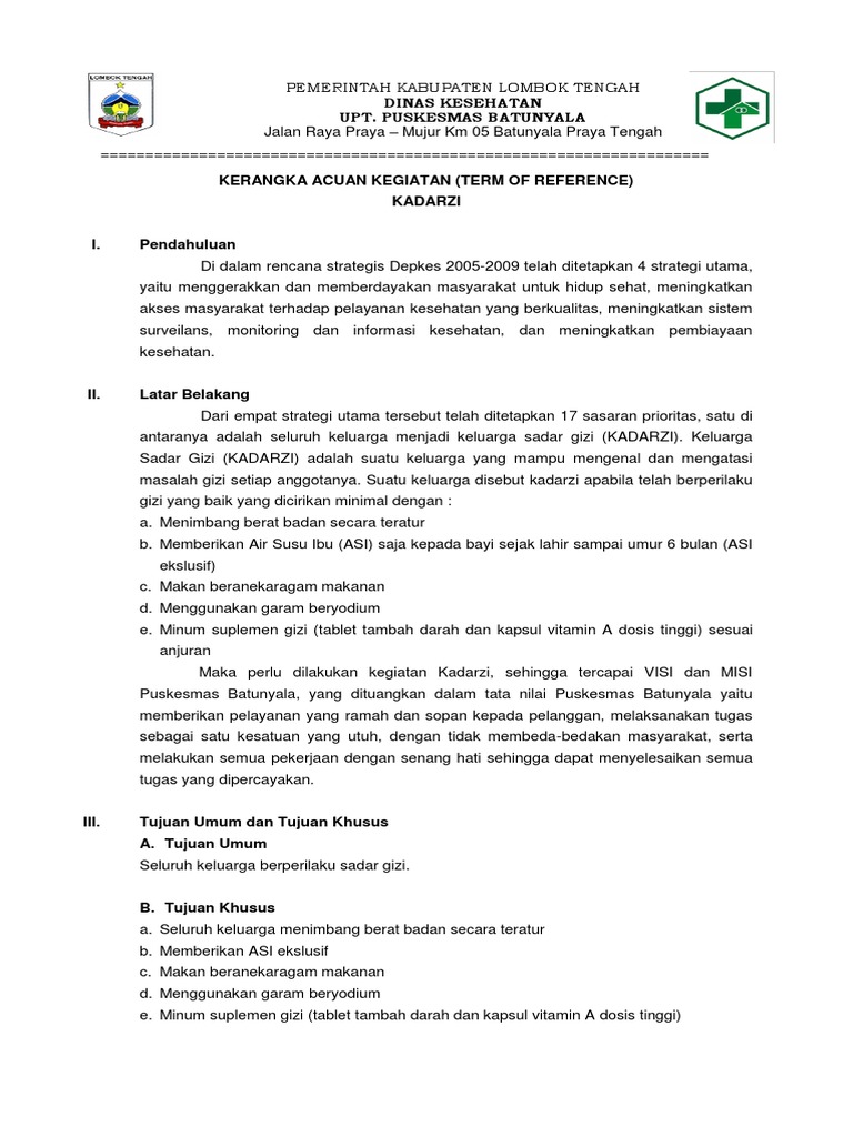 Maksud kegiatan penyusunan standar biaya dimaksudkan untuk memberikan standarisasi bagi perencanaan penganggaran kementerian negaralembaga dalam rka kl secara efektif dan efisien. Semarang 01 2016 pejabat pelaksana teknis kegiatan ramadhan e sh spn nip. 2 tahapan pelaksanaan kegiatan sosialisasi perencanaan program 2016 urutan kegiatannya adalah sebagai berikut. Kerangka acuan kerja rapat monitoring dan evaluasi rencana aksi daerah rad pangan dan gizi provinsi jawa tengah tahun 2015 2019 view. 1963 0223 198411 1 001. Memuat gambaran umum latar belakang suatu kegiatan strategi capaian tujuan penerima manfaat peserta waktu kegiatan dan biaya yang diperlukan.