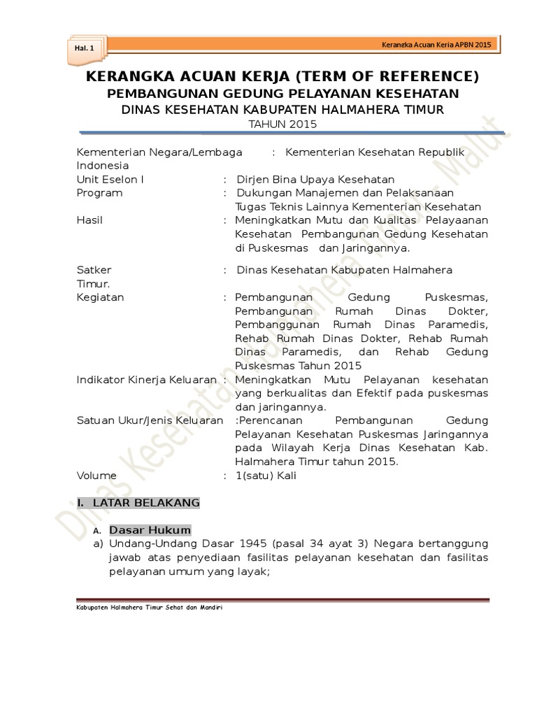 Kerangka acuan kerja kak perencanaan pembangunan gedung kantor inspektorat kabupaten aceh barat daya. Kerangka acuan kerja kak untuk pekerjaan konstruksi dalam hal ini rehab gedung kantor yang dipinjam pakai oleh pemerintah provinsi sumatera utara dan pemerintah pusat kepada pemerintah kota gunungsitoli dau 2017 perlu dipersiapkan dengan baik sehingga mampu menjadi pedoman bagi penyedia jasa untuk mewujudkan karya konstruksibangunan gedung yang sesuai dengan kepentingan. Kerangka acuan kerja kak pembangunan ruang lobby antara gedung b dan c badan diklat kemendagri 1. Academiaedu is a platform for academics to share research papers. Latar belakang dengan melihat tantangan pengembangan pendidikan tinggi dimasa mendatang yang semakin ketat sejalan dengan pesatnya perkembangan ilmu dan teknologi. Latar belakang kantor dinas psda provinsi jawa tengah yang ditempati saat ini adalah aset milik pemerintah provinsi jawa tengah.