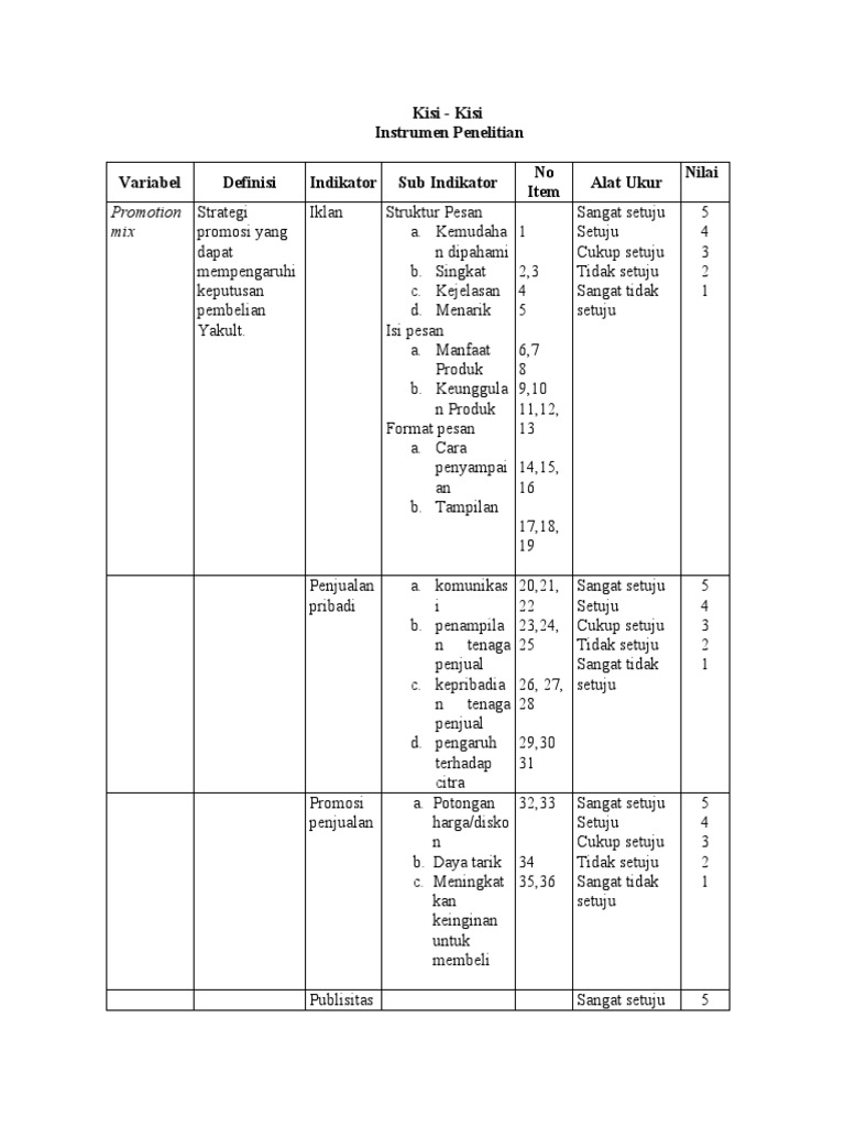 Contoh kisi kisi instrumen. Intan cahyaningrum bandung jawa barat indonesia mahasiswi pendidikan matematika upi 2011 lihat profil. Pengalaman saya dengan berpartisipasi dalam berbagai studi sosiologis dan penelitian interdisipliner lainnya menunjukkan bahwa alat pencarian yang digunakan pada prinsipnya tergantung pada jenis. Analisis pembelajaran kooperatif tipe jigsaw. Juni 11 februari 1 2012 32 desember 8 november 19 mei 1 maret 4 author. Contoh kisi kisi instrumen afektif skala likert ko. Kisi kisi instrumen merupakan pedoman atau panduan dalam merumuskan pertanyaan pertanyaan instrumen yang diturunkan dari variabel evaluasi yang akan diamati.