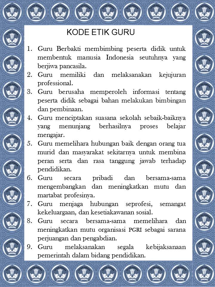 Contoh kode etik guru. Contoh kasus pelanggaran kode etik guru. Dijelaskan pula bahwa ketegasan seorang guru di dalam memberikan hukuman kepada peserta didik memang sangat dibutuhkan. Guru memiliki kejujuran profesional dalam menerapkan kurikulum sesuai dengan kebutuhan anak didik masing masing. Guru berbakti membimbing anak didik seutuhnya untuk membentuk manusia pembangun yang berjiwa pancasila. Hal tersebut tentunya dipengaruhi oleh tingkat kesulitan di dalam memberikan didikan kepada anak terutama yang memiliki sifat cukup bandel. Isi dan bunyi kode etik profesi guru pgri secara lengkap pengertian tujuan fungsi sumpahjanji nilai dasar operasional hubungan guru dengan peserta didik orang tua masyarakat sekolah organisasi profesi dan pemerintah pelaksanaan pelanggaran dan sanksi.